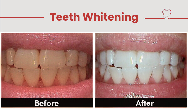 Even if you follow brushing and flossing habits routinely, some environmental factors, time conditions, and foods will diminish the natural shine of your teeth. Whitening your teeth in a professional way is a great way to remove the stains effectively to get your dream smile. Our highly skilled dentists perform this in a safe, less sensitive, and effective manner. Teeth whitening is often performed in two methods, In-office teeth whitening and In-Home teeth whitening.